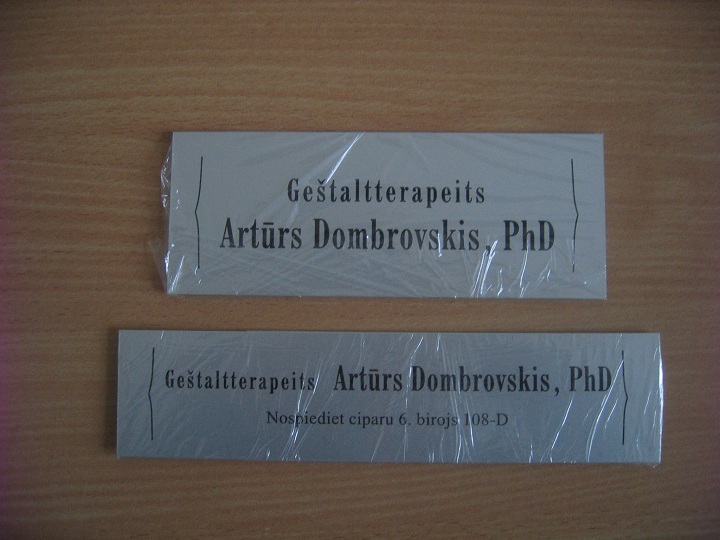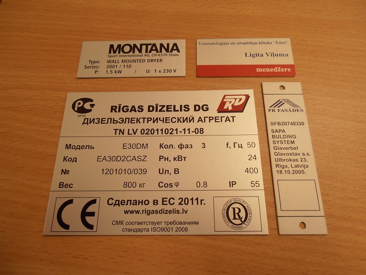 Мы предлагаем нанесение информации на погодостойких анодированных металлических табличках. С информацией о вашей компании (входных, с названием компании или логотипом, дверных табличках с именем или нумерацией и т.д.) внутри или на улице.